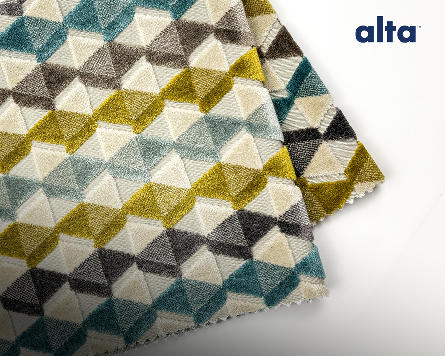 Geo energizes interiors with its bold, interlocking diamond motif and dimensional plush texture. The geometric design adds a striking, modern rhythm to seating, while the alta™ Plush finish provides superior stain resistance and easy maintenance. Geo is a statement textile that delivers impact and performance for hospitality and contract settings.